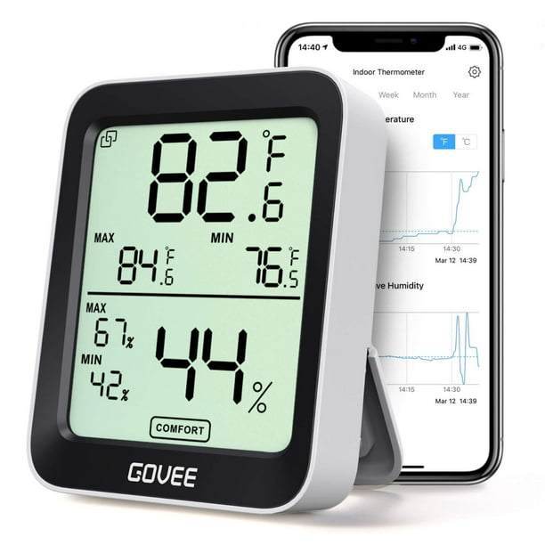 Govee Smart Hygrometer Thermometer Bluetooth Humidity Temperature Gauge With Remote Monitor Large Lcd Display Notification Alert With Max Min Records 2 Years Data Storage Export Black Walmart Com