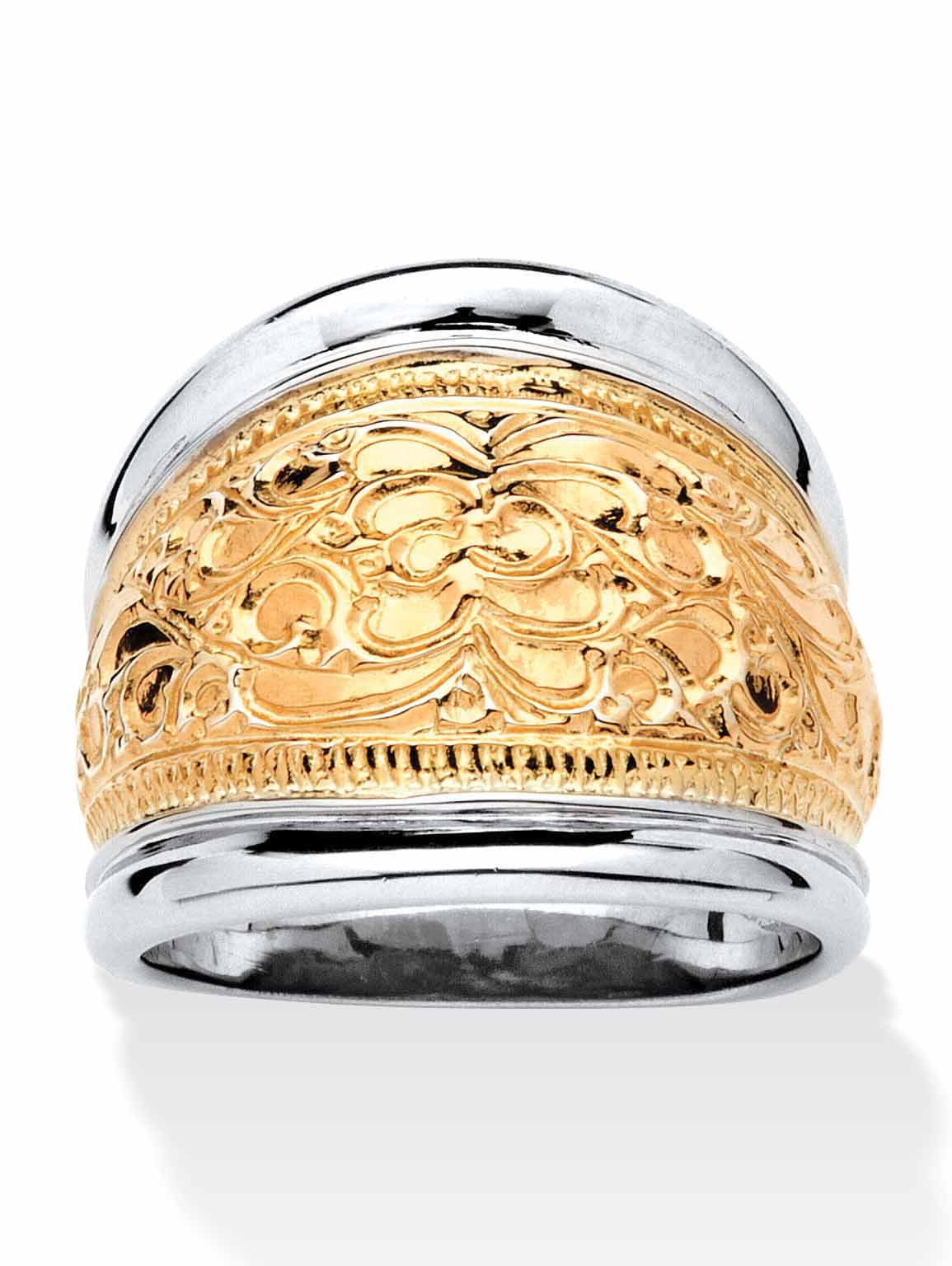 Yellow Gold Plated Sterling Silver Two Tone Scroll Motif Cigar Band Ring Walmart Com